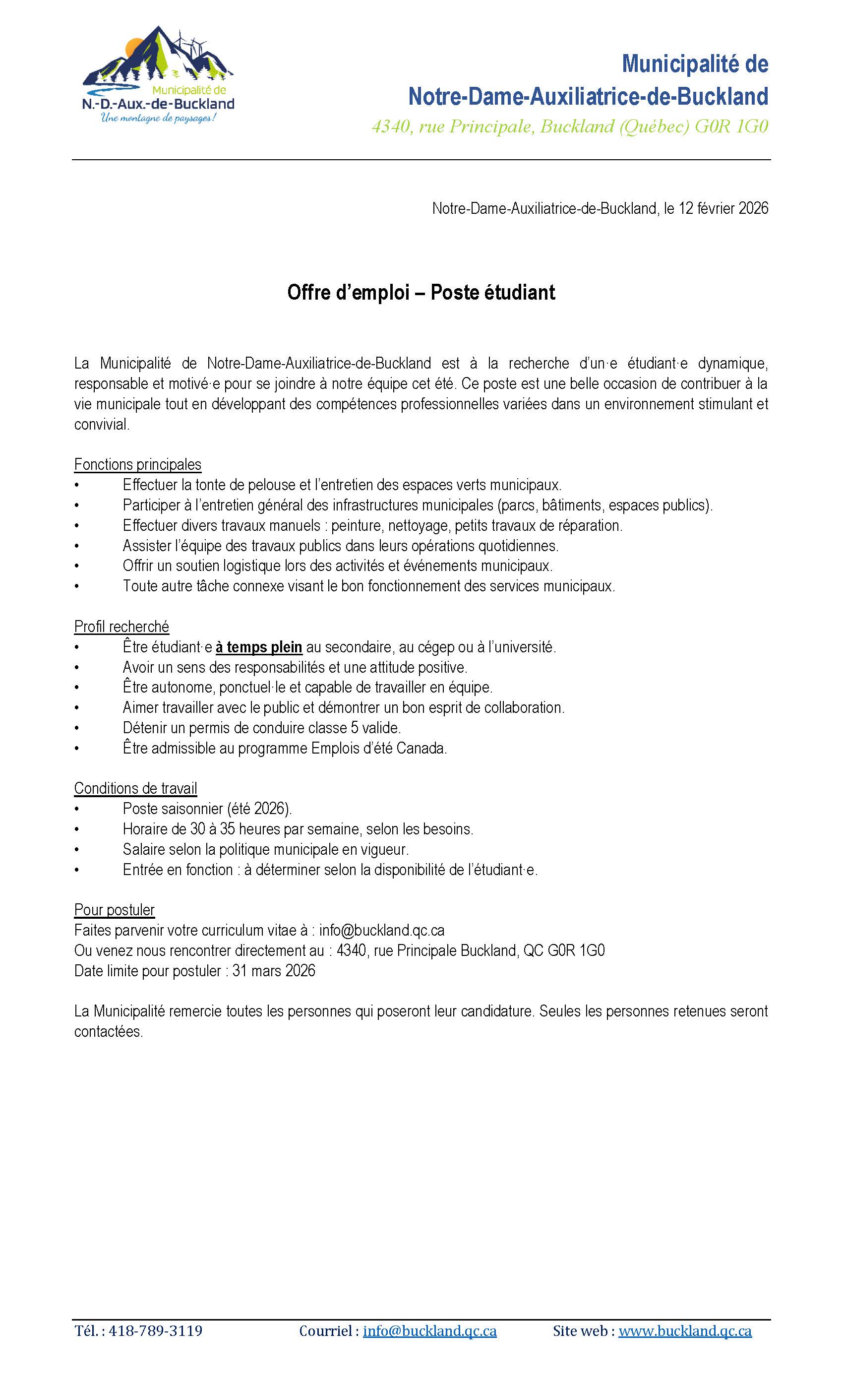 Offre d'emploi étudiant